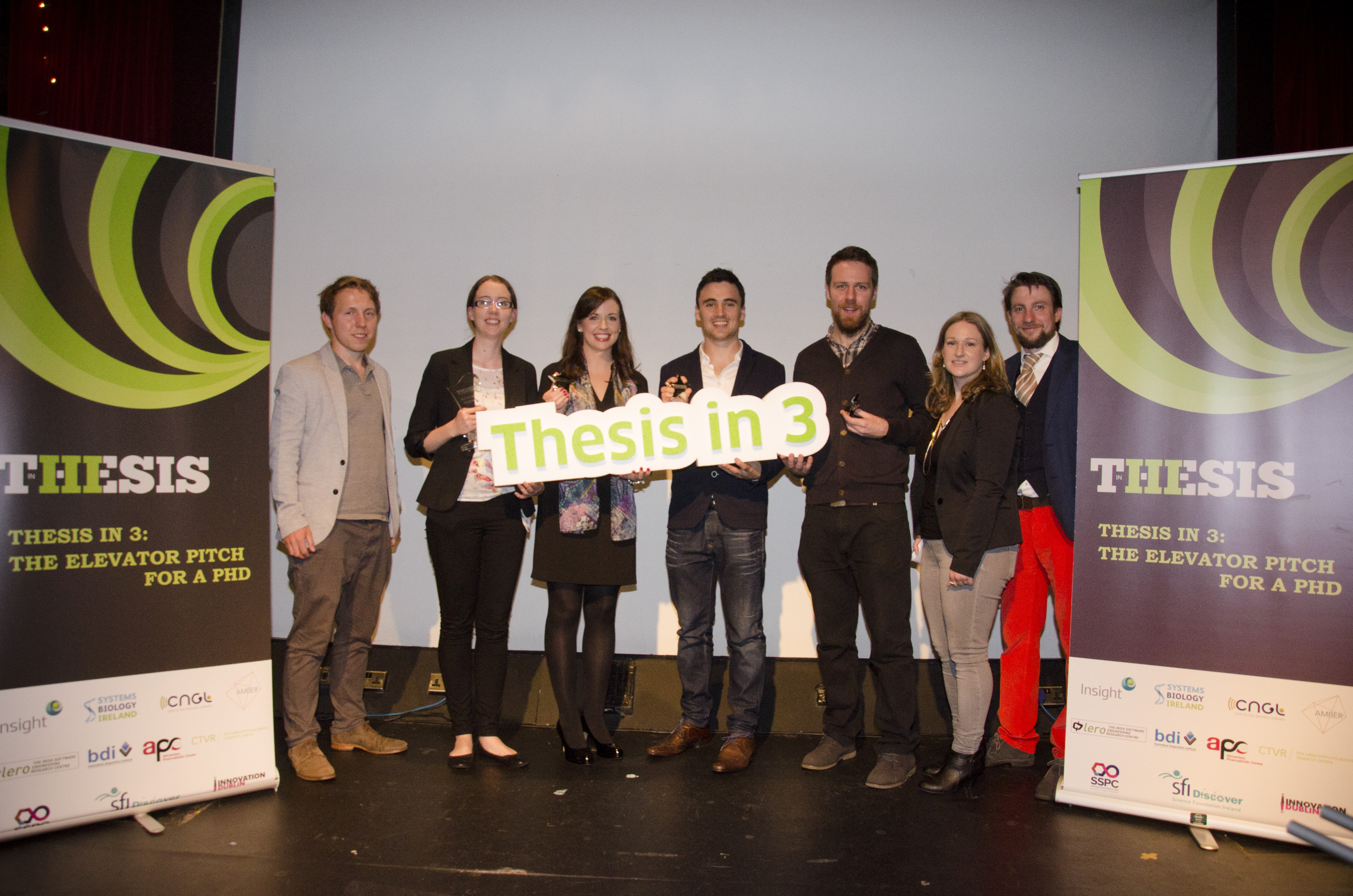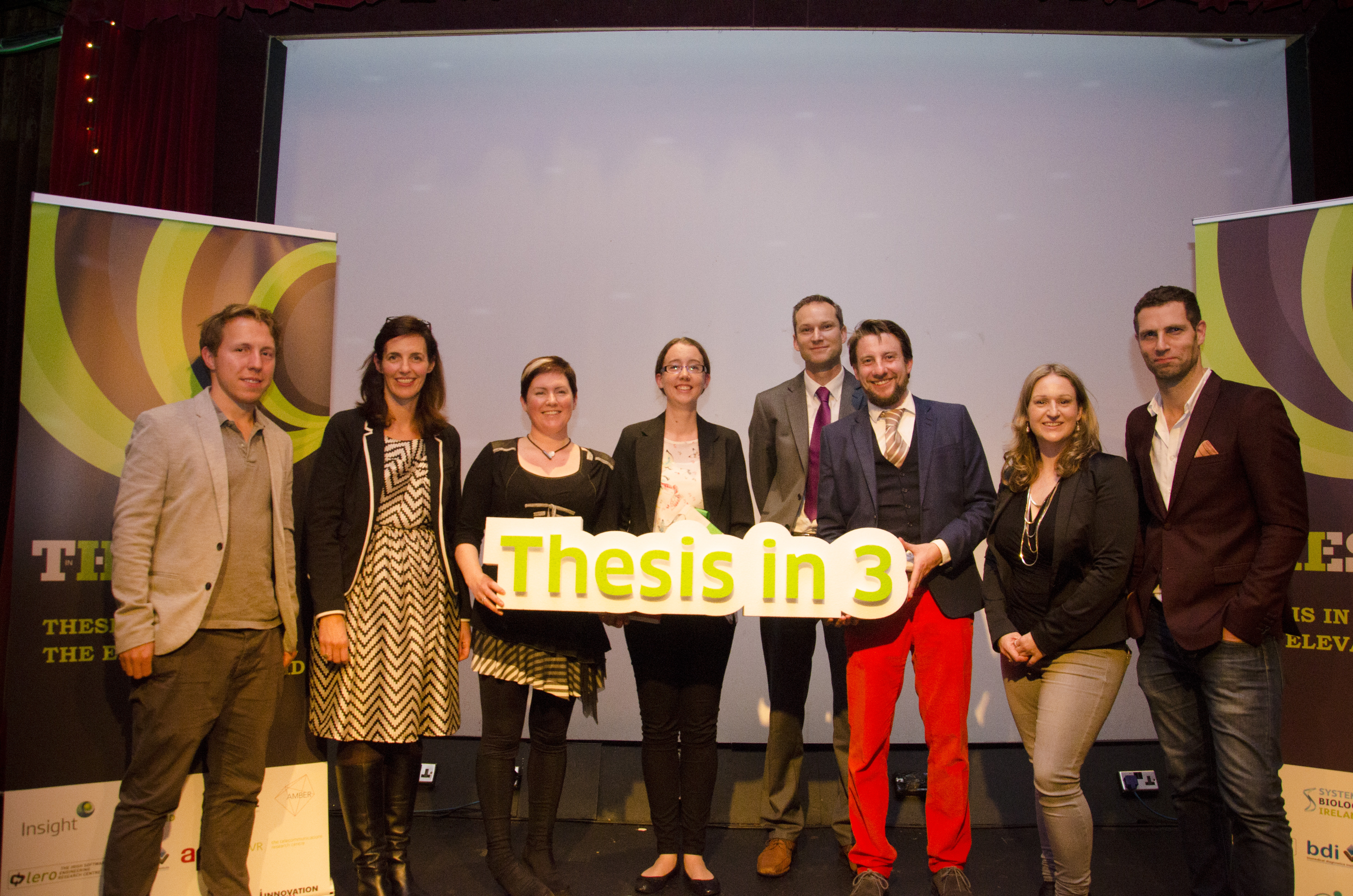 The event was recorded with edited videos appearing shortly on the Thesis in 3 YouTube channel. For further information please visit the website:www.thesisin3.com Thesis in 3 is sponsored by the SFI Discover Program and co-organised by Dr. Aoibheann Bird (Insight Centre for Data Analytics), William Fitzmaurice (Systems Biology Ireland) and Philip Smyth (UCD).